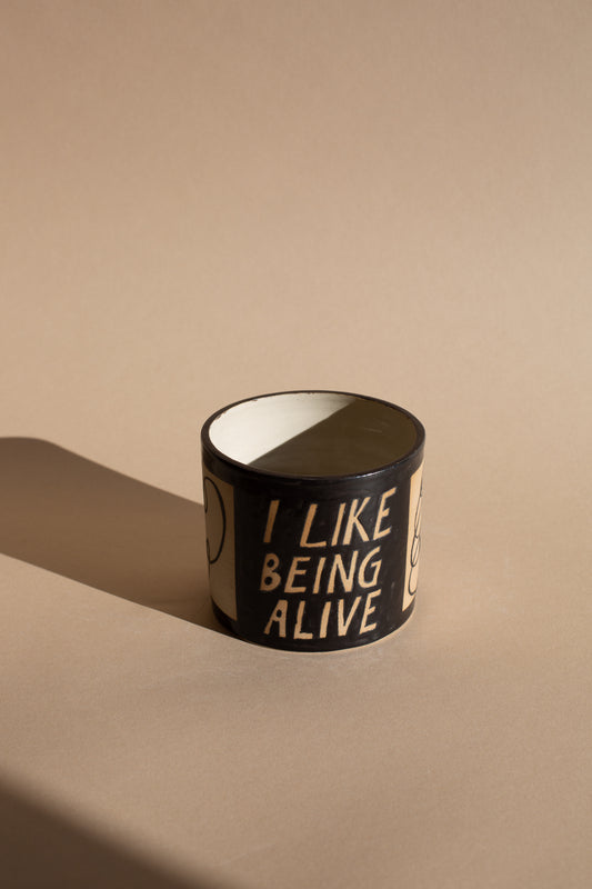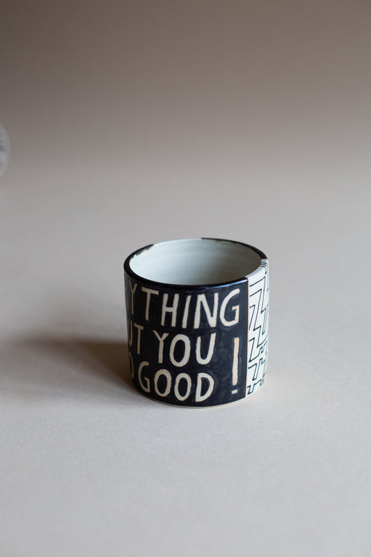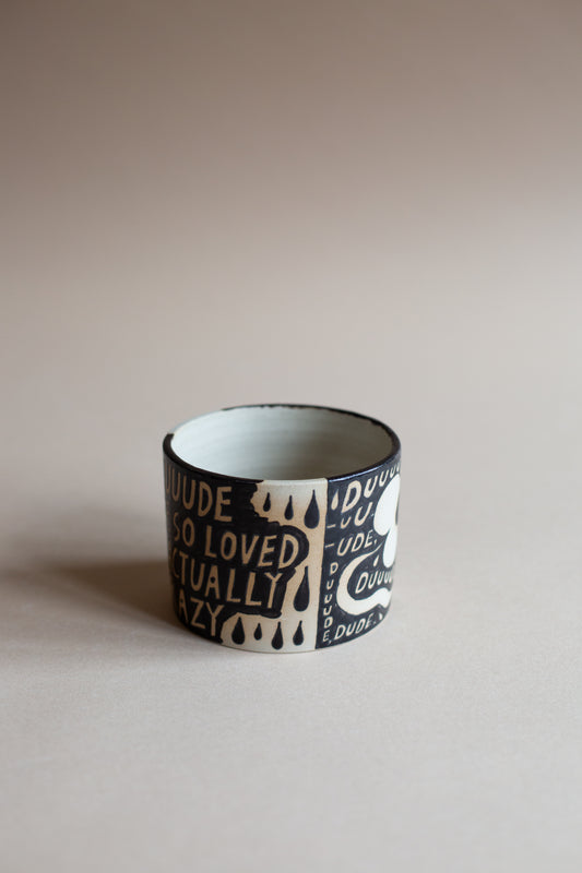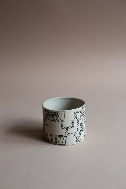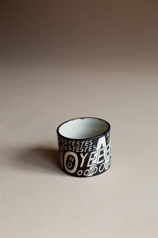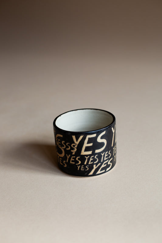 Hand-painted vessels to keep you company as you do this life thing. Each of these vessels have something to say; some with words, others with shapes and lines; all of them with feeling. Use them for tea or coffee or as the perfect recipient for your keepsakes or pens or pencils. They'd also be great for aperitivo nibbles (hello, hummus in a YES vessel? ...yes. YES!!!).