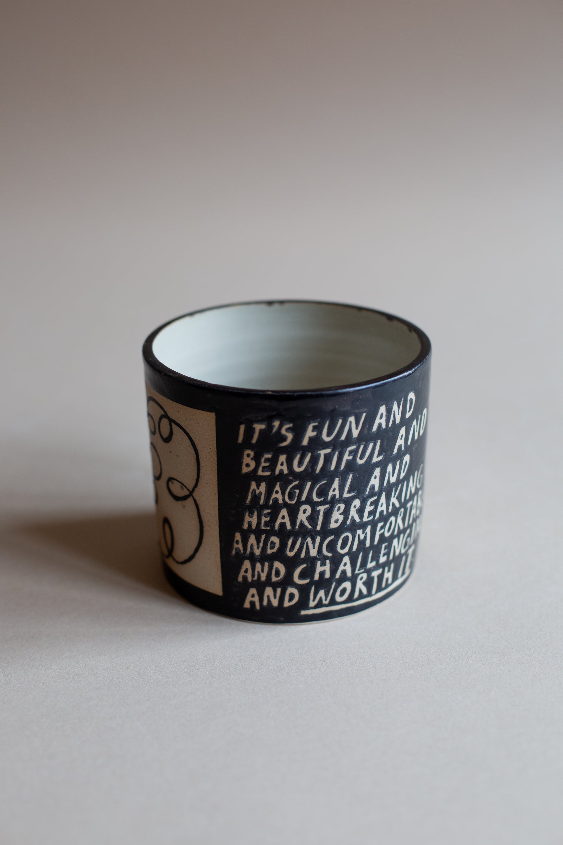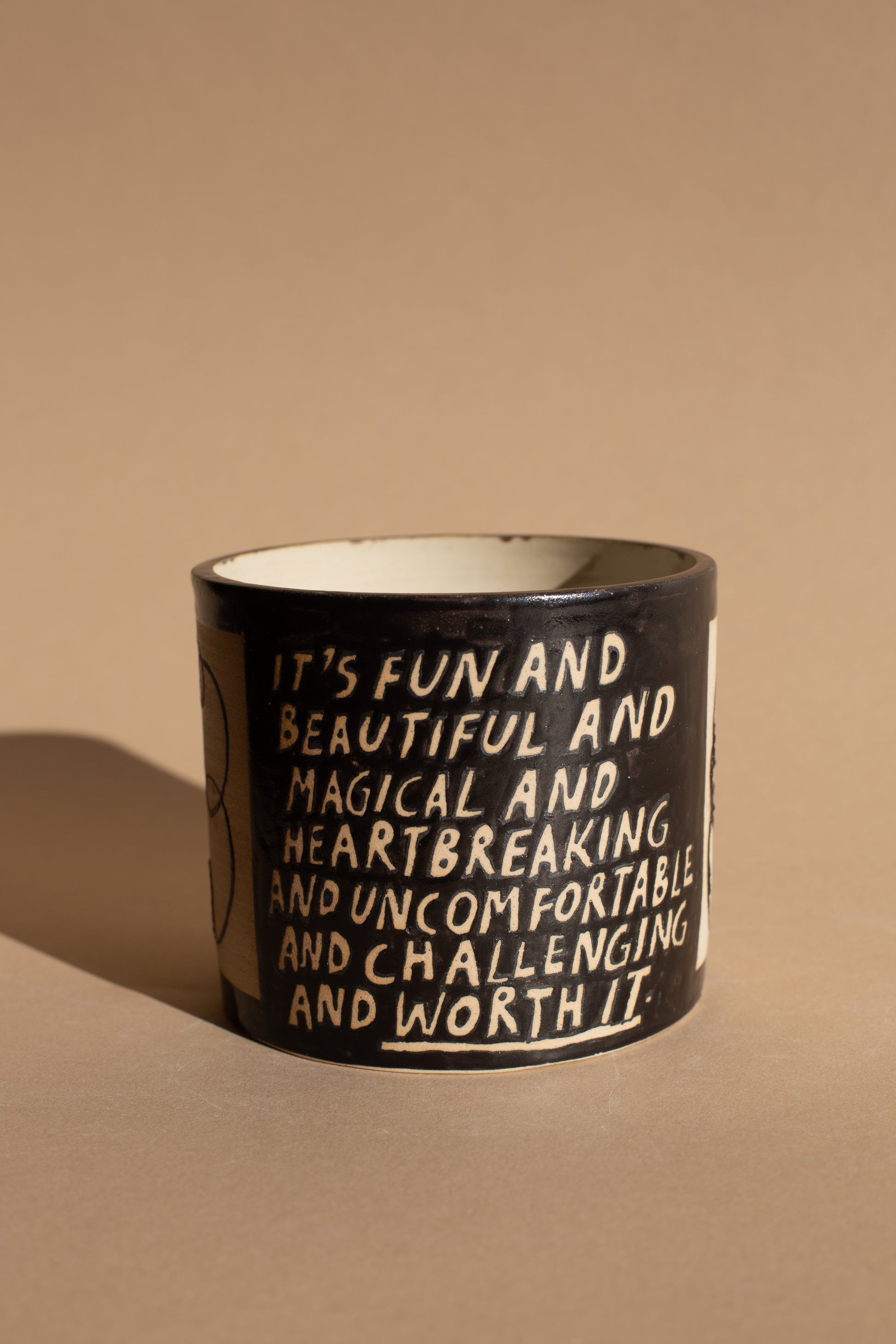 Large, hand-painted and one-of-a-kind. Use it for whatever tickles you. An enormous hot beverage (who else prefers big bevs?), to serve your aperitivo nibbles, as a home to your paintbrushes. It's your life, boo. Use her howsoever you please.