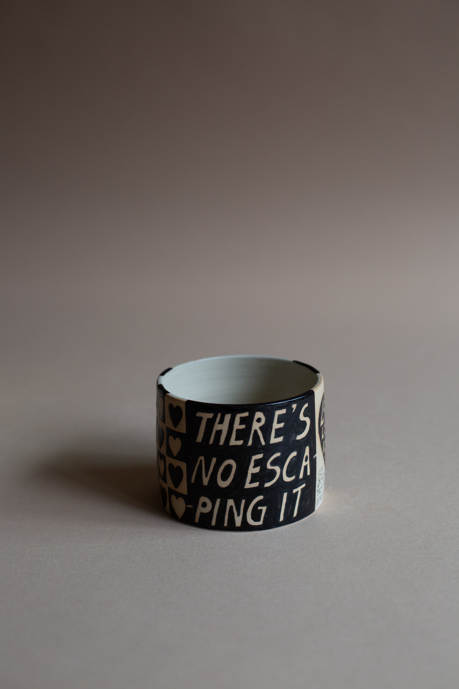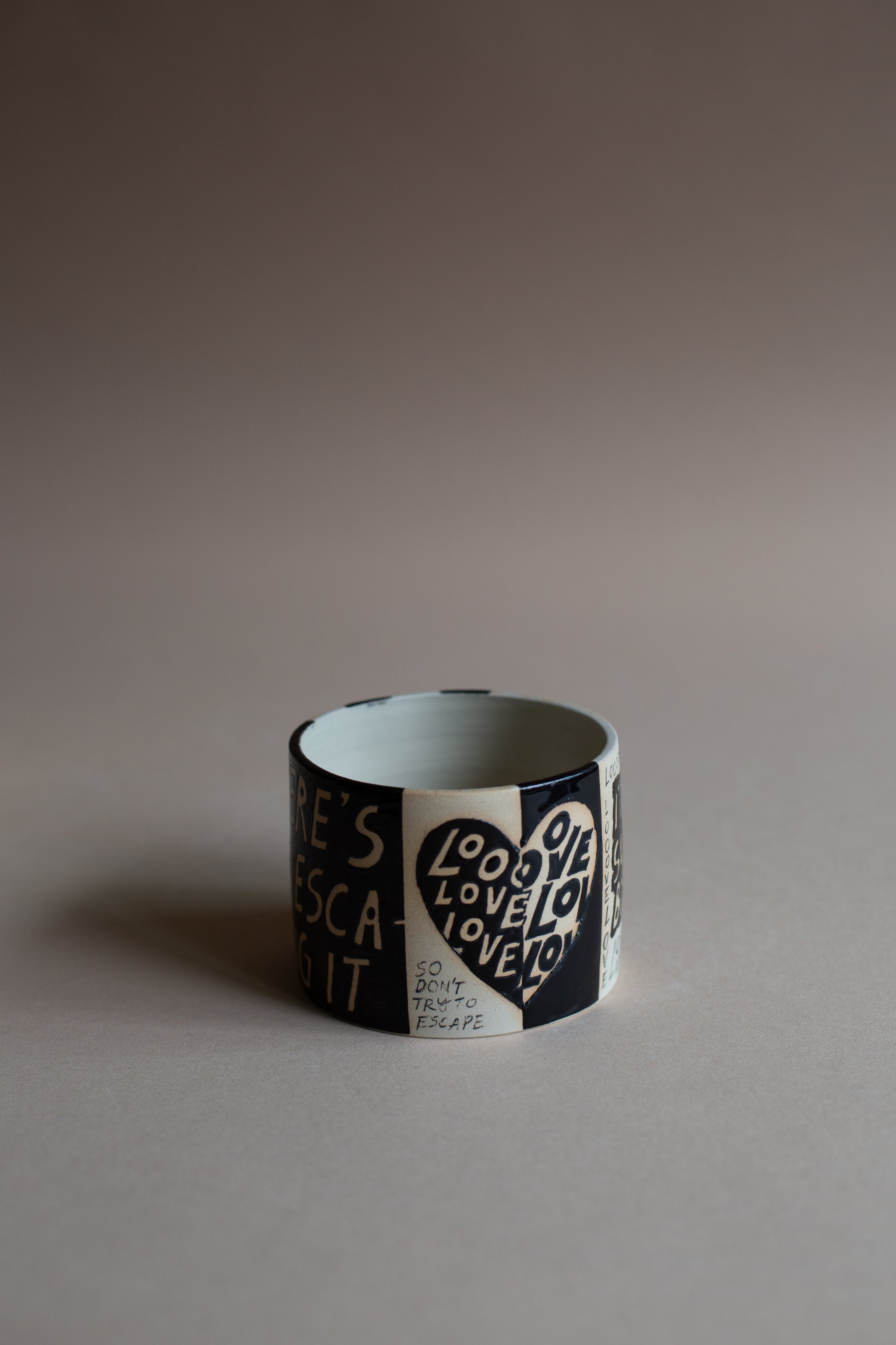 A vessel to remind you that you are, in every moment, surrounded by love. There isn't any escaping it. (So don't try to escape). This piece is not only sweet as a button with its message, it's also a delight to the senses. The contrast between the glazed and unglazed parts of the vessel feel like heaven to touch. A dear friend said to me that she'd love to see it filled with crudités and hummus. I feel we may have to oblige her.