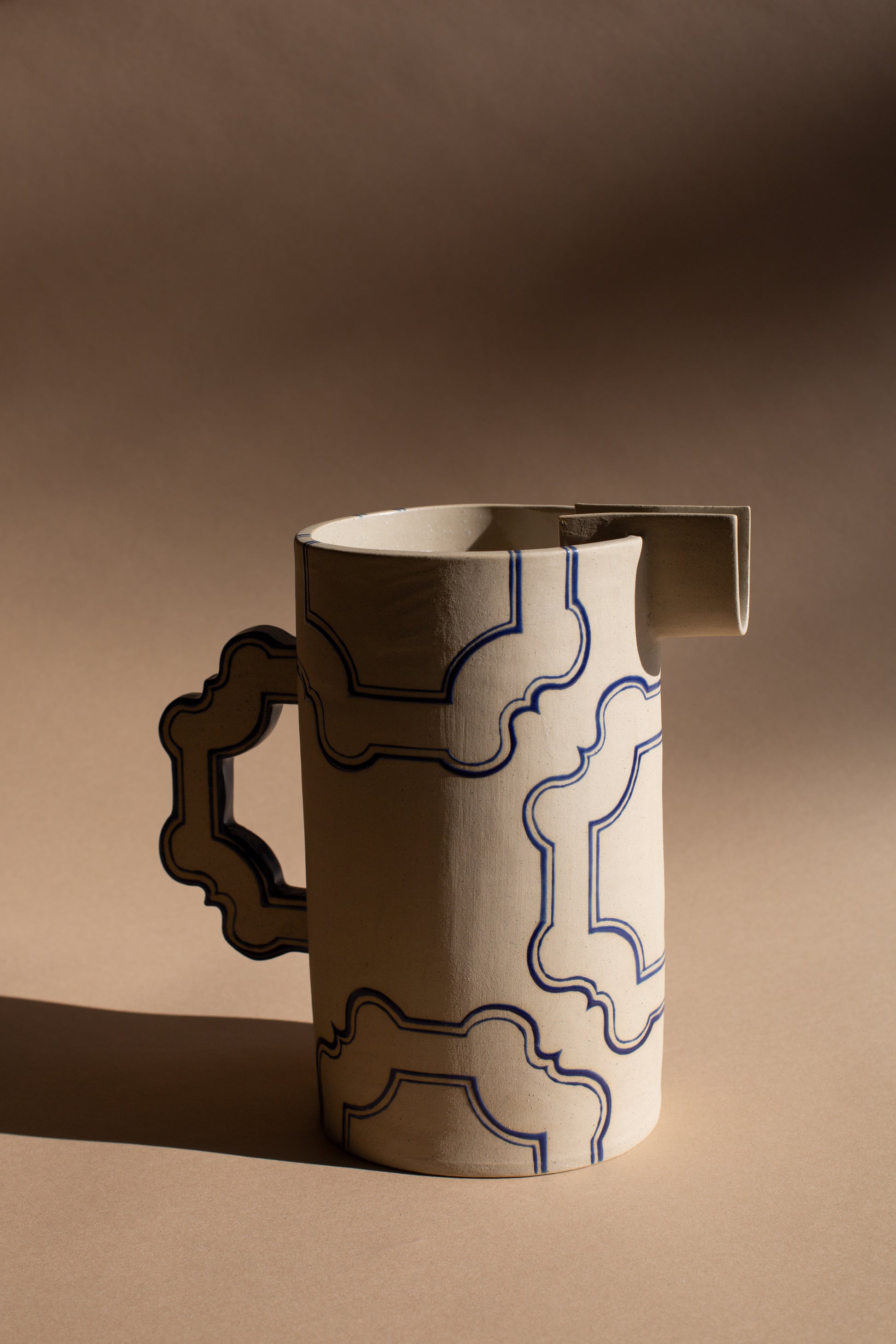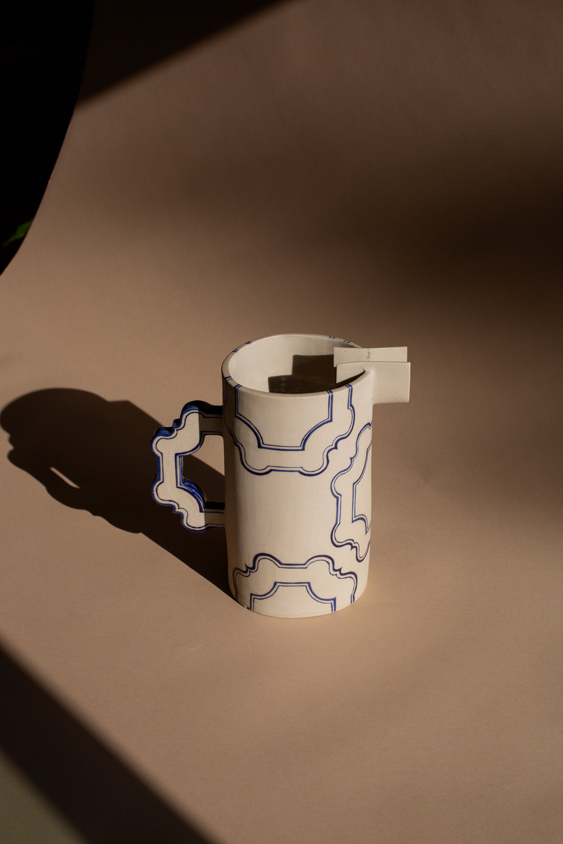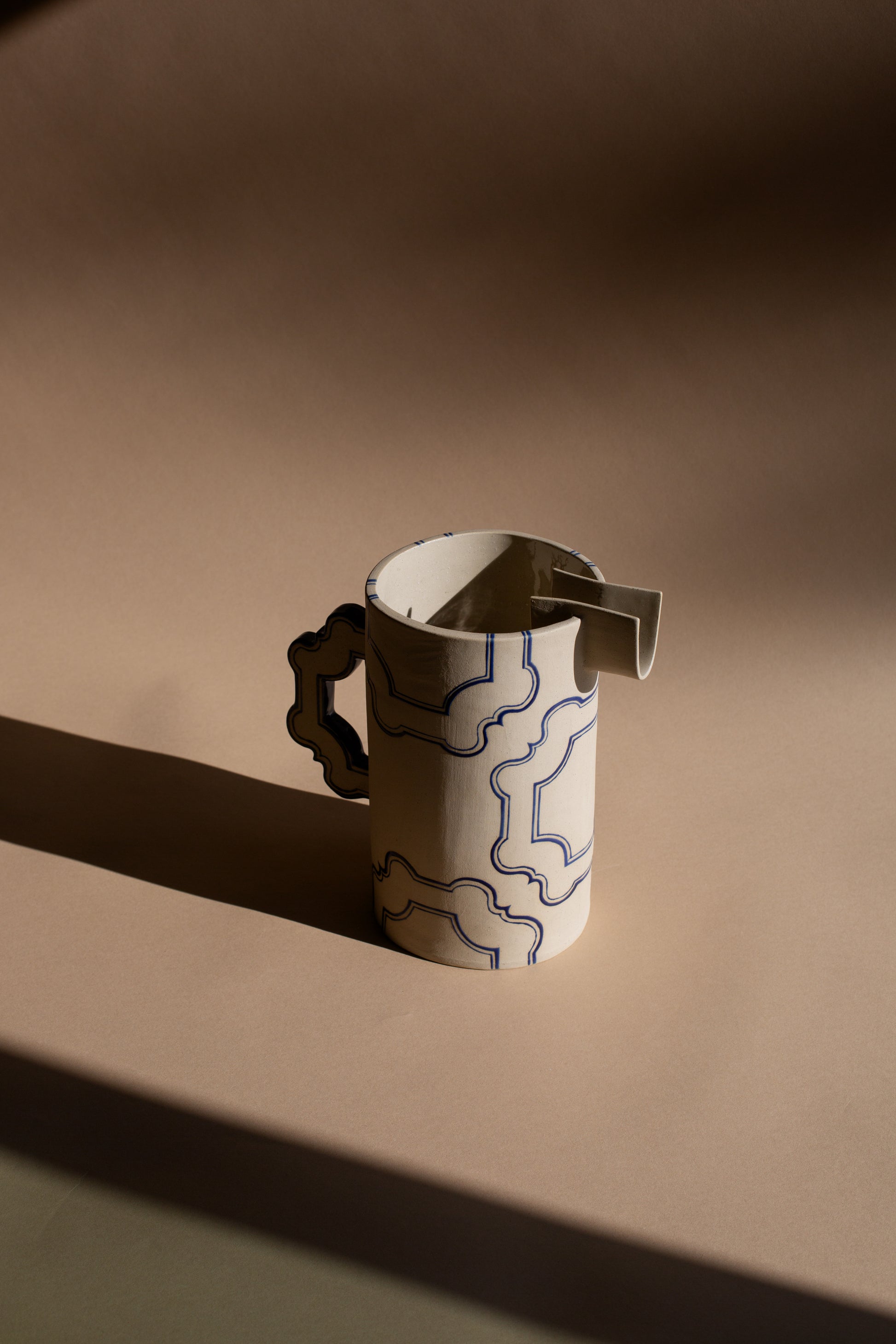 Lavanderia means laundry room in Italian. This jug is inspired by the tiles in the laundry room in my family home here in Perugia. A sculptural piece as an ode to ancestry and tradition—a smidge different from my usual work, I felt deeply called to adorn this piece (and change its usual handle shape) with this intricate design, to honour my heritage, and specifically my grandparents, who stewarded this home and infused it with their essence.