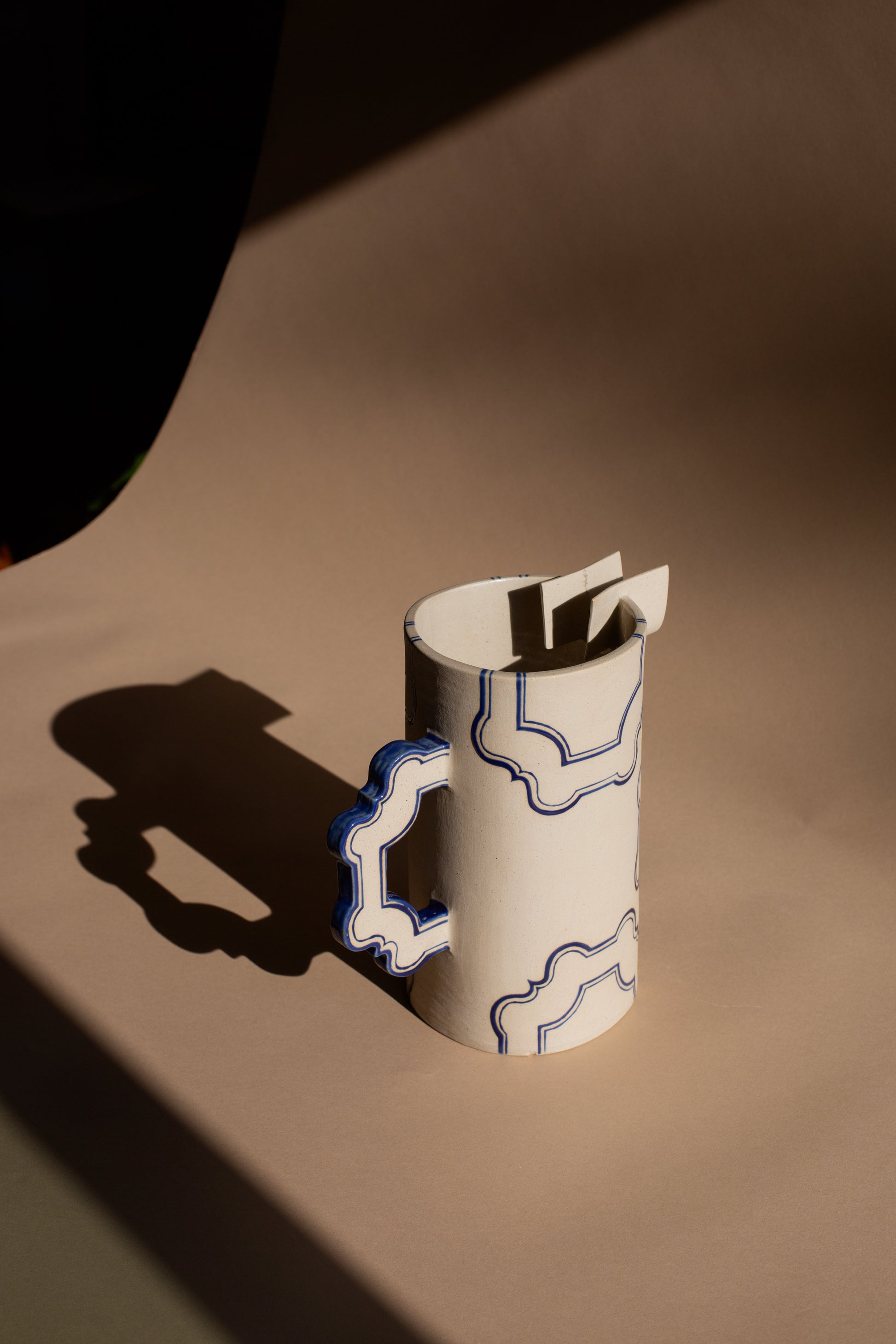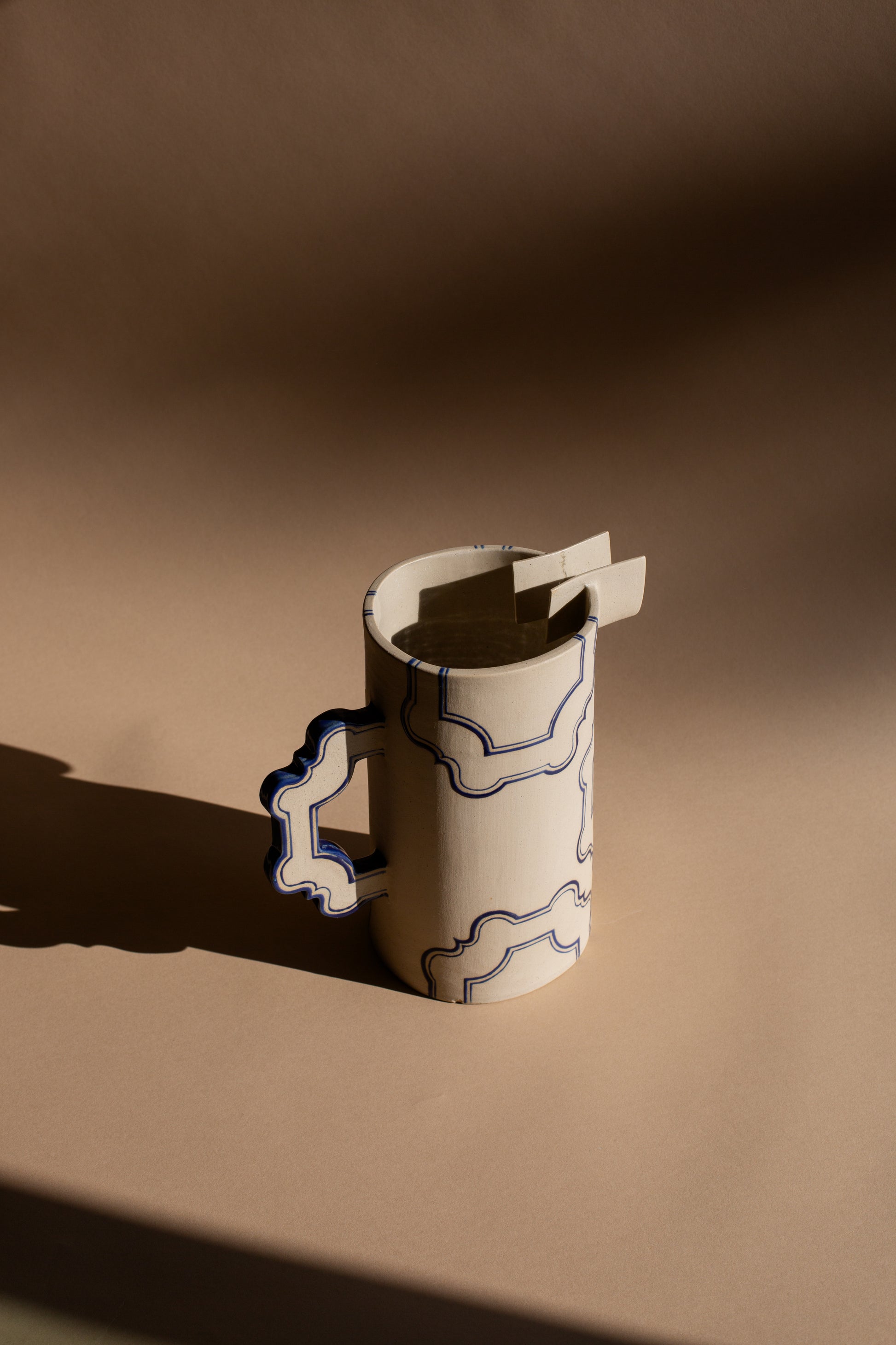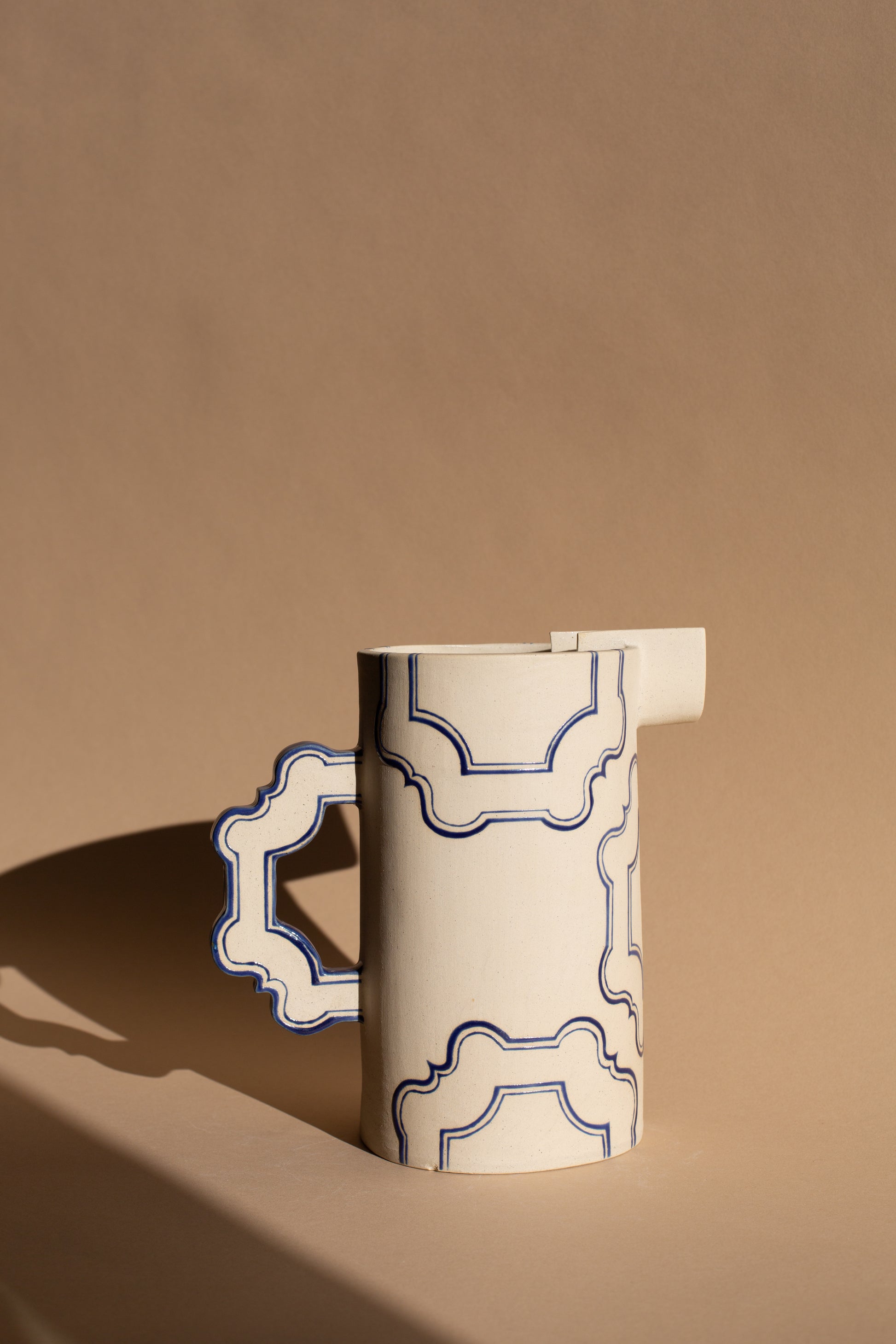 Lavanderia means laundry room in Italian. This jug is inspired by the tiles in the laundry room in my family home here in Perugia. A sculptural piece as an ode to ancestry and tradition—a smidge different from my usual work, I felt deeply called to adorn this piece (and change its usual handle shape) with this intricate design, to honour my heritage, and specifically my grandparents, who stewarded this home and infused it with their essence.