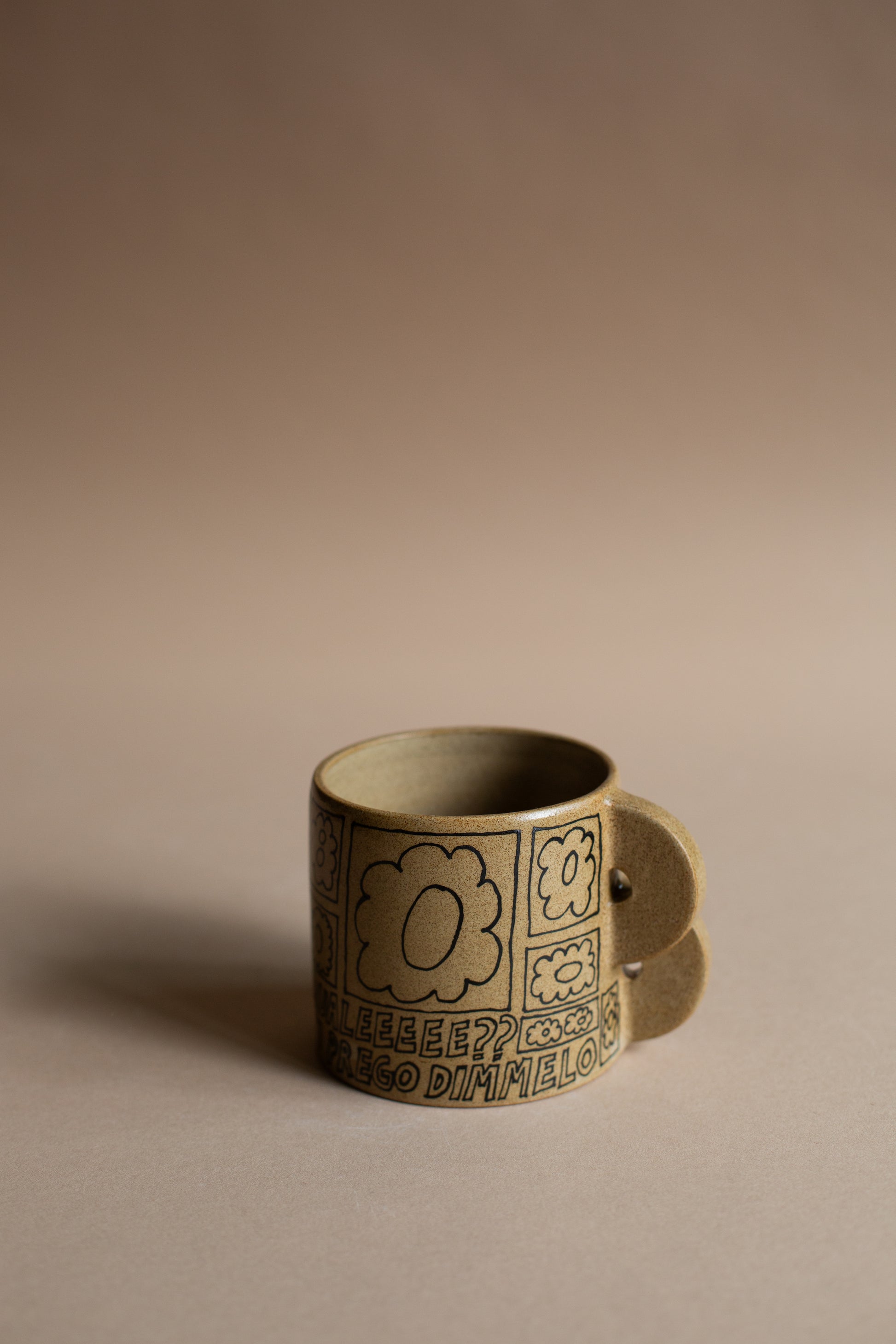 The mug asks. A playful Double Trouble mug featuring hand-painted illustrations and lettering. Toffee clay with black fine-liner glaze, all covered in clear glaze, resulting in the most satisfying silky smooth finish. The perfect object to bring home to your life. A great addition to your mug collection. The ideal babe for your desk, a unique home to your pens / pencils / paintbrushes / ideas. Or, a fun vessel for the dinner table. Fill with breadsticks or carrot sticks or literally whatever on Earth would bring you joy. Because that's what she's here for.