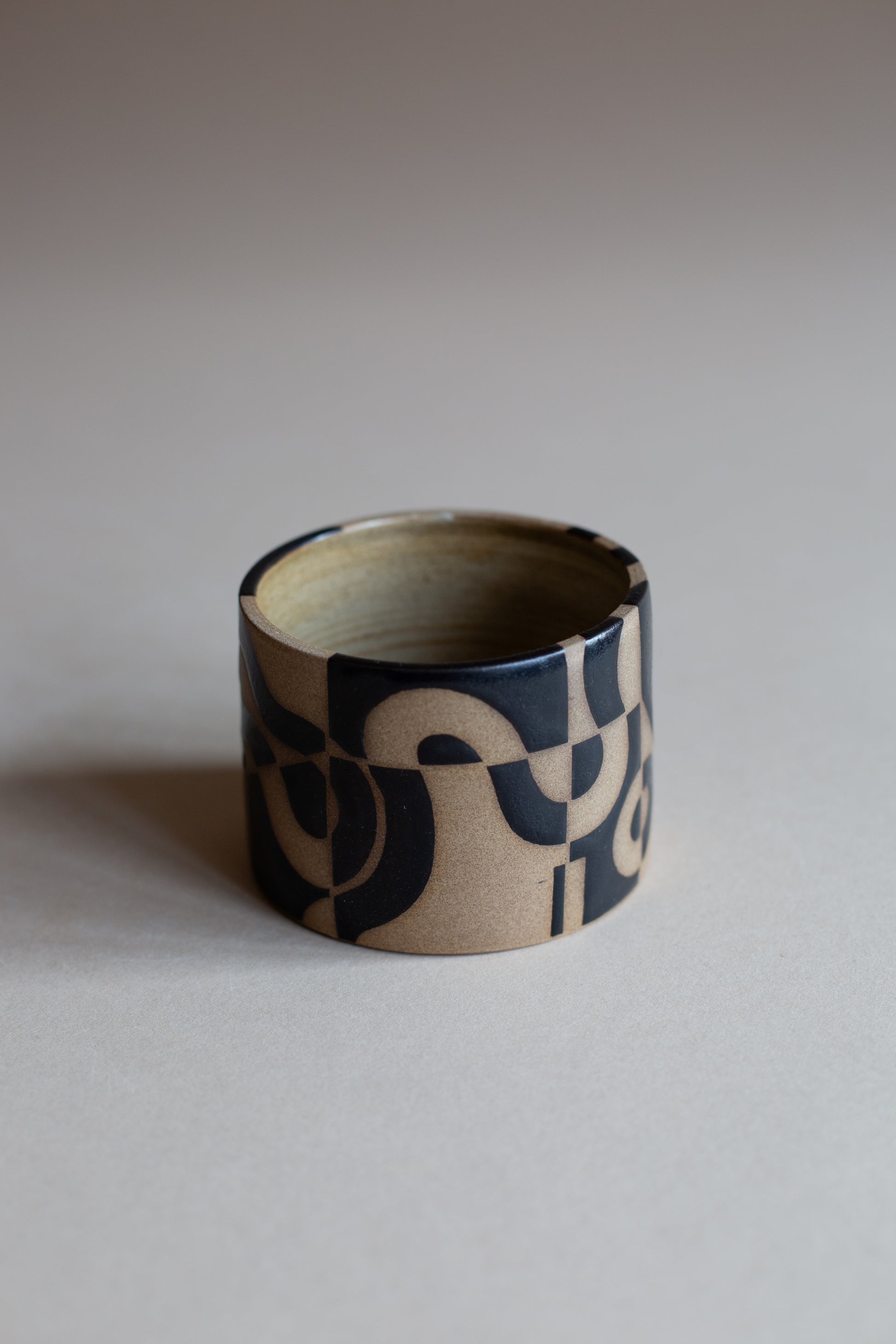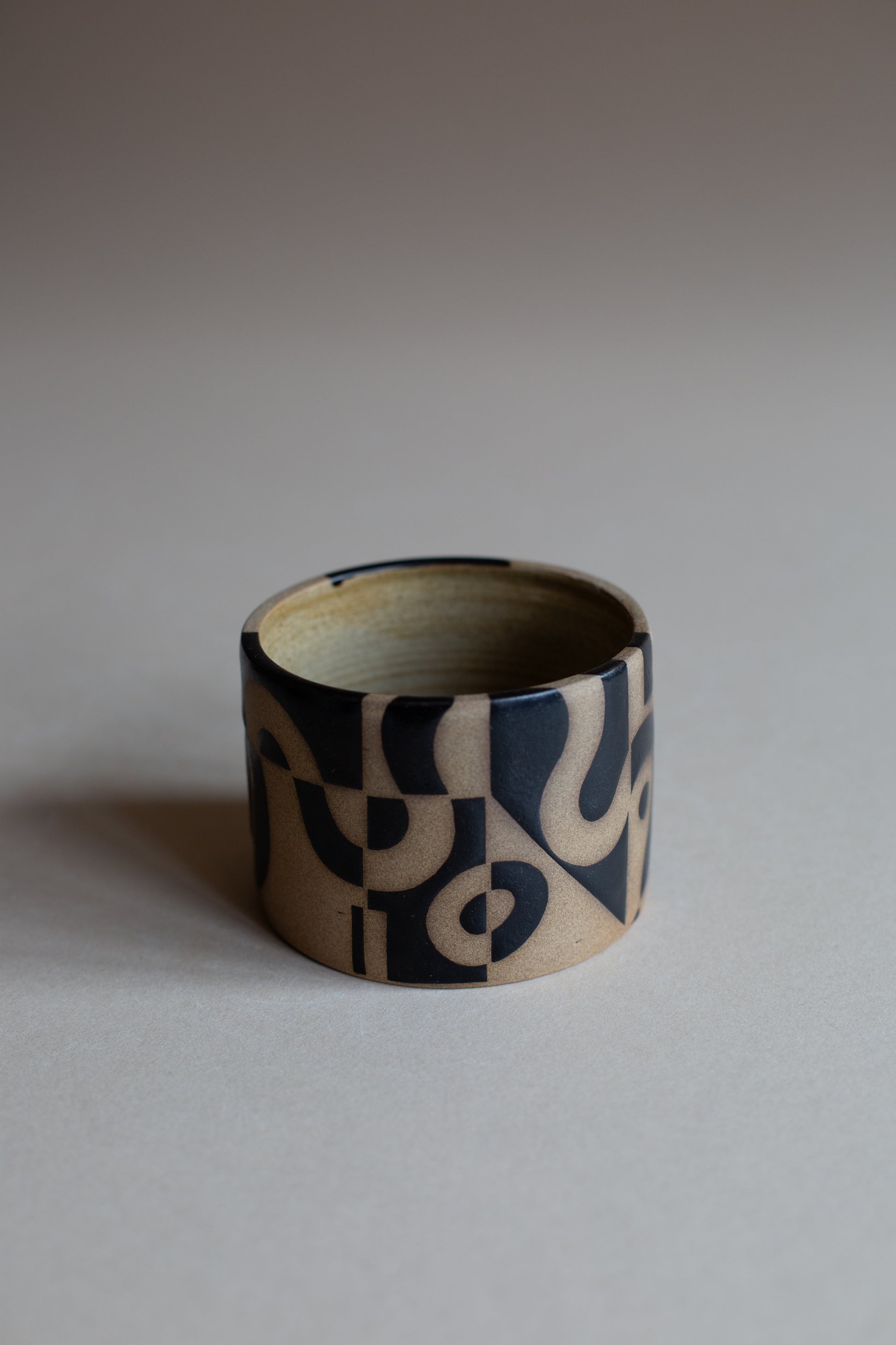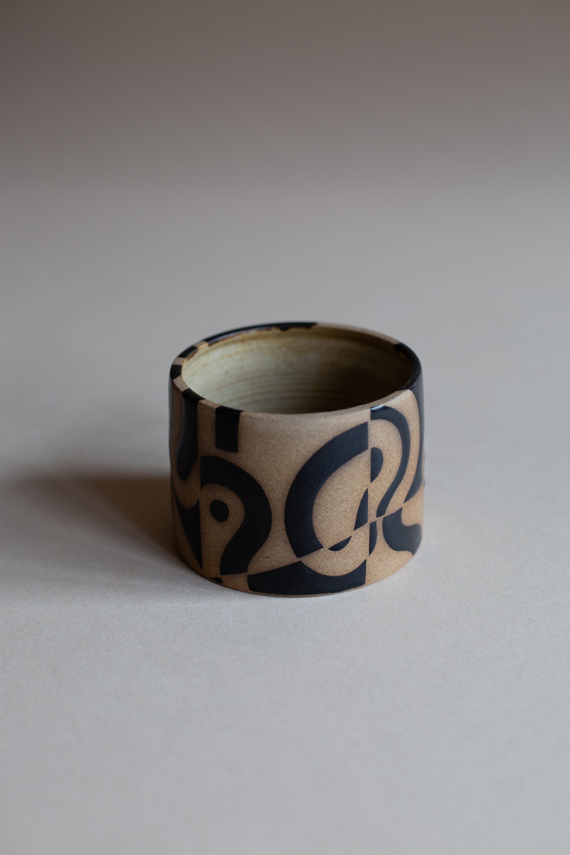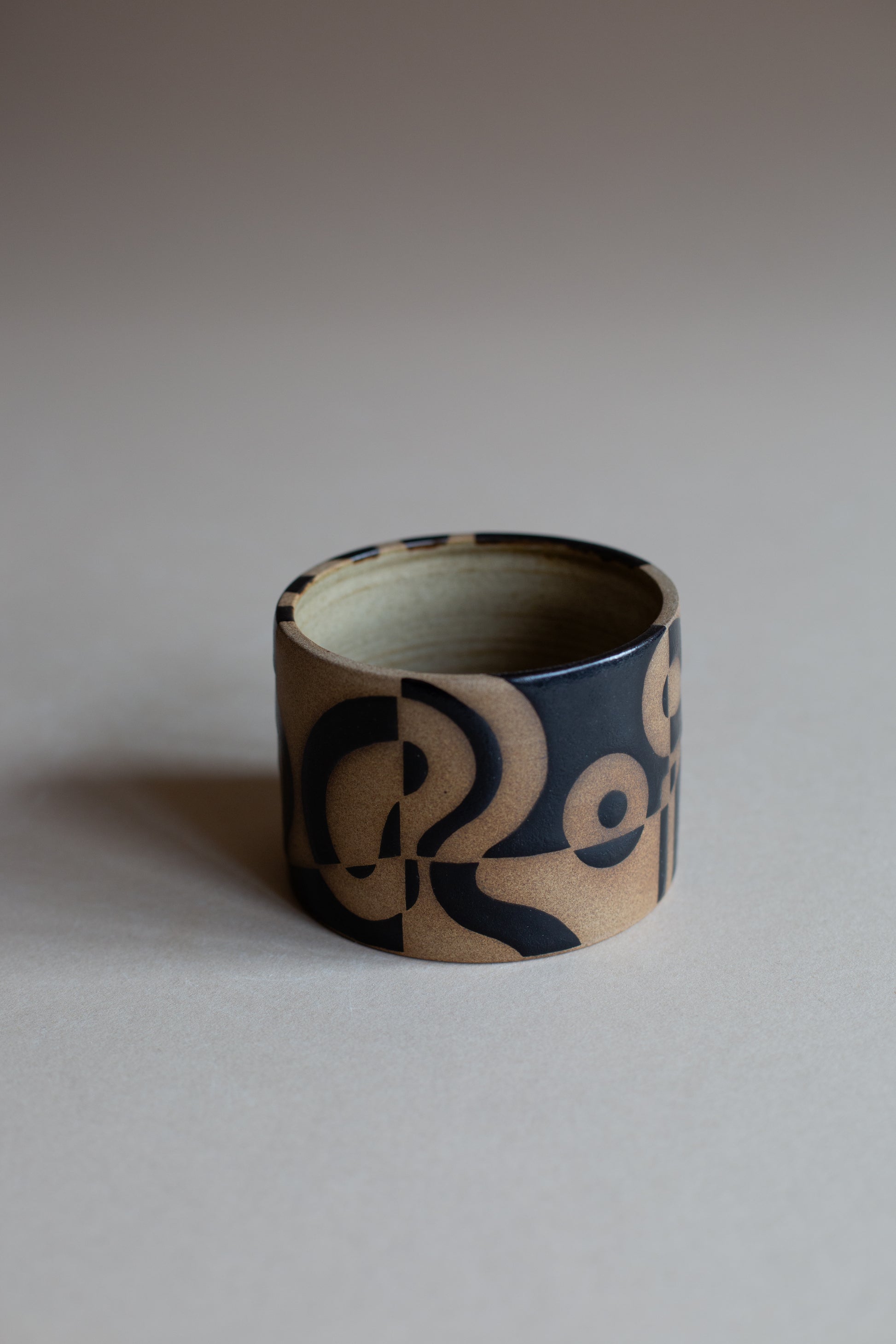 Hand-painted. Absolutely no stencils in sight. Black glaze on toffee stoneware clay. Fired twice at 1280°C.